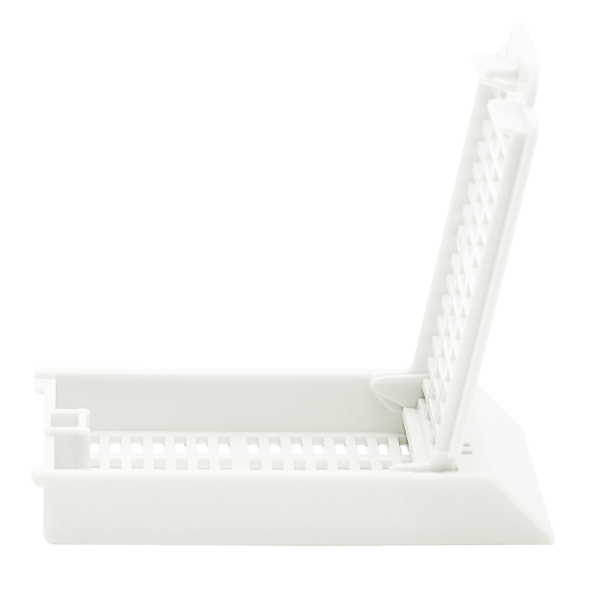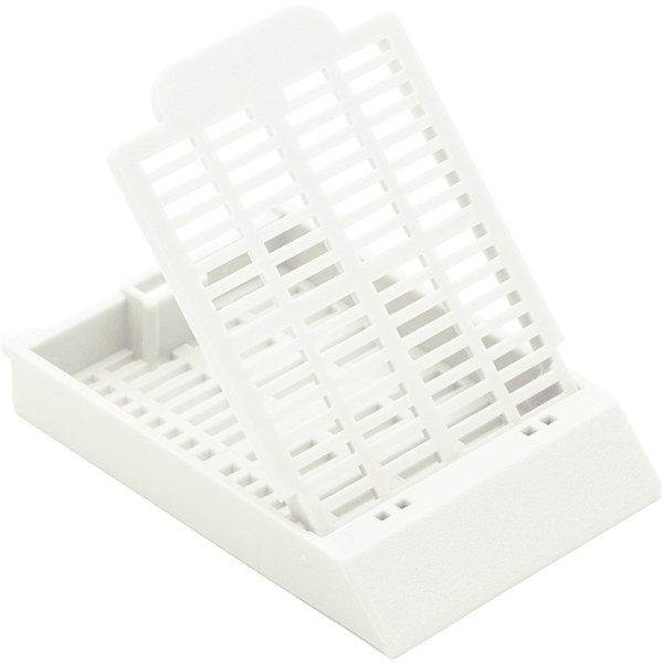 Aplicação: O K7 - Cassete histológico com tampa removível é utilizado no processamento de amostras de tecidos em laboratórios que realizam análises histológicas. São resistentes à corantes e às ações químicas produzidas pelos solventes utilizados na histologia.